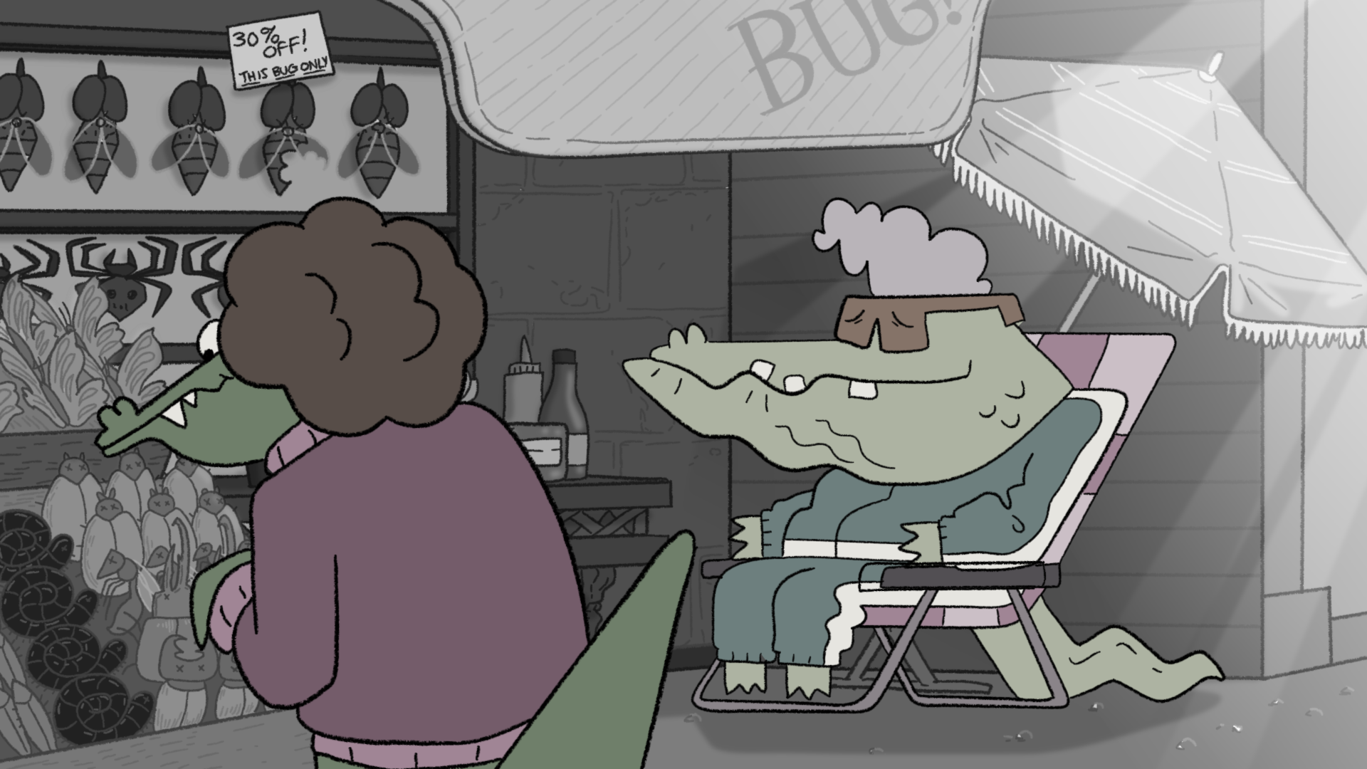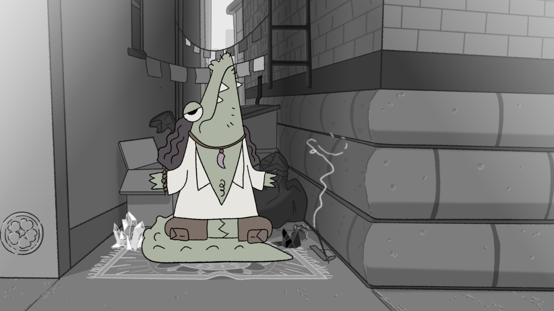 Lindsey und Alex Small-Butera sind genau diese Menschen, die früher mal an ‚Adventure Time‘ mitgewirkt haben und mit ihrer Web-Serie ‚Baman Piderman‘ als Co-Creators die höchste Auszeichnung in Sachen TV Show eingesammelt haben, den Emmy. Genau diese zwei haben sich zusammen getan, einfach mal so geheiratet und ihre kreativen Special Powers im SmallBu Animation Studio kombiniert. Zusammen mit Pillow Fight Games (Heaven Will Be Mine, Rose Of Winter) – die sich sehr für diverse, inklusive Development Teams mit fairen Lohnzahlungsoptionen einsetzen, um originelle narrative Geschichten erzählen zu können – arbeiten sie jetzt am klassischen handgezeichneten 2D Alligatoren-Detektiv-Abenteuer.