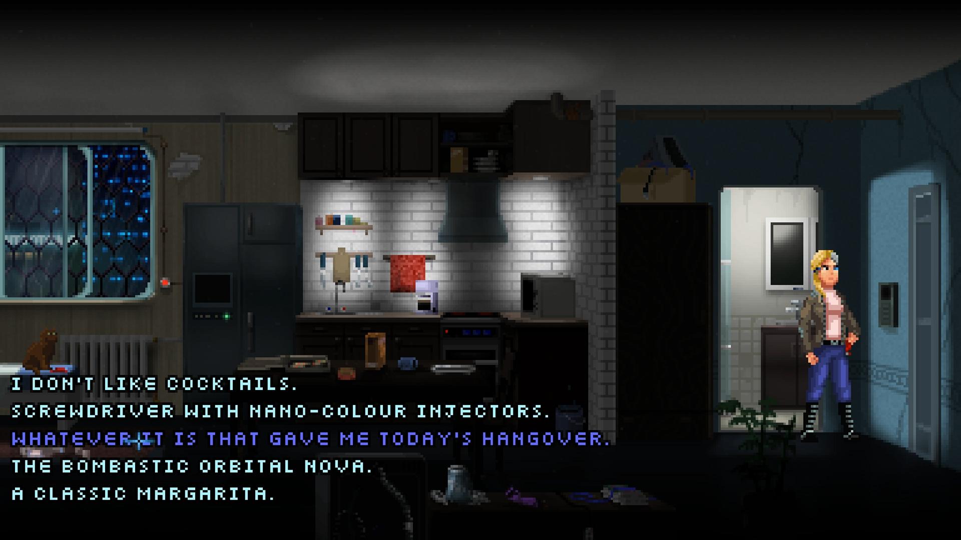 Das Klassische Point and Click ist oft recht linear. Born Punk aber packt all den Charme der 80er Adventures in den cyberpunk Koffer für die Zukunft und fädelt ein Entscheidungs-Konsequenzen-Schleifchen drum herum. Auf nach Bornholm!