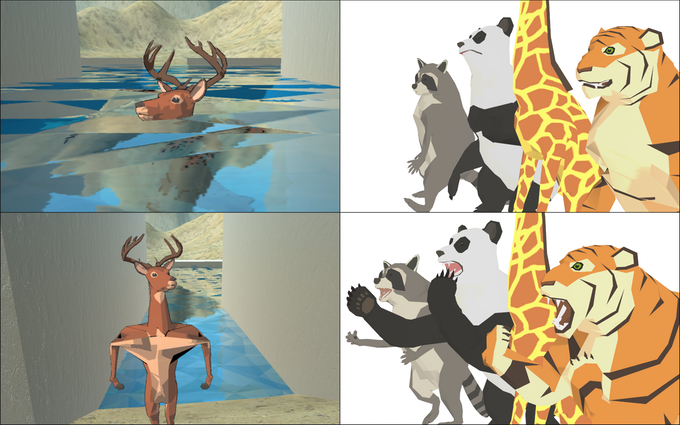 Deeeer Simulator ist purer absurder Spaß in verdammt lässiger Optik und bekloppten Animationen, chaotischer Killefitz, nischiger Nonsens und das Ausleben absoluter Kreativität. Da fliegt auch schon mal ne Kuh wie ne Rakete in die Luft. Was witzig wirkt könnte natürlich auch vielen Spaß machen. Als Keisuke zur Uni ging hatte er nichts anderes im Kopf als ein Spiel zu kreieren, dass so viele Menschen wie möglich spielen wollen. Ein Spiel für alle. Als er im Sommer ein Video zu seinem Hirsch postete, dessen Hals verdammt lang anwuchs, wurde es nach eigenen Aussagen insgesamt über 2 Millionen mal abgespielt. Ein Jahr später lief der stolze Hirsch aufrecht aus dem Wasser und Twitter lief Amok. Wieder wurde das Video über 100.000 mal retweetet.