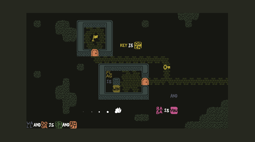 So ist es in Baba is You am Ende möglich, dass du aus dem kleinen Hasen ähnlichen Wesen die Wände des Levels werden lässt und mit der kompletten Inneneinrichtung in Richtung Fahne wanderst, um das Level abzuschließen. Aus „Baba is You“ wird „Wall is You“, aus „Flag is Win“ ein Kreuzwort aus „Baba is you“ und „Baba is Win“ oder du änderst gleich alles und schiebst dir die Regeln so zurecht, dass du ein Stein bist und der ehemals gefährliche Schädel das Ziel. Die einzige Konstante, die Kette aus Subjekt, Prädikat und Objekt mit eventuellen Ergänzungen. Dein manifestierter Weg zur Lösung.