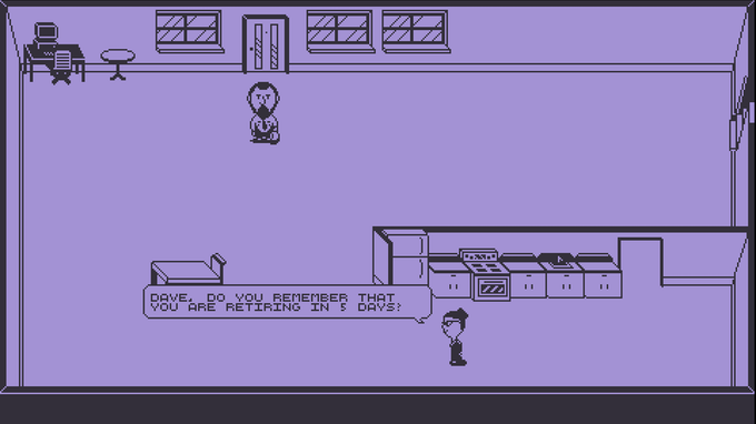 Als Kind hat er einige Programmier-Kurse belegt. Ein Spiel zu veröffentlichen war immer sein Traum, doch irgendwie fiel ihm das Programmieren nicht leicht und er schloss mit dem Gedanken wohl nie ein Spiel fertigzustellen. Irgendwie lies ihn das nie so richtig los, weswegen er an einer äußerst langweiligen Stelle in seinem Leben das Thema Spielentwicklung wieder aufnahm und sich mit der Pixelkunst beschäftigte. Nun befindet er sich mit Dave-Man tatsächlich auf dem Weg zur Veröffentlichung eines Videospiels. Das möchte Lou als Erfahrungsgewinn mitnehmen, weswegen er auch die Kickstarter-Kampagne gestartet hat. Er möchte Reaktionen, Kritiken und Unterstützung, die ihn in seinem weiteren Verlauf als Game-Designer bekräftigen. Kannst du haben Lou: Dave-Man ist ein detailverliebter Game Boy like Pixel-Arcade-Spaß, der mit liebevollen und frischen Eigenheiten Akzente setzt. Nahezu ein Pac-Man RPG, in dem du dein wohlverdientes Gehalt im Ruhestand in Hobbies und die Verschönerung des Hauses steckst. Pac-Man Gameplay verknüpft mit Inhalt und Story. Da gab es schon wesentlich plumpere Pac-Man-Clones. Dave-Man ist keiner davon. Und mit seinen ZX Spectrum Remixes zudem noch äußerst eingängig.
