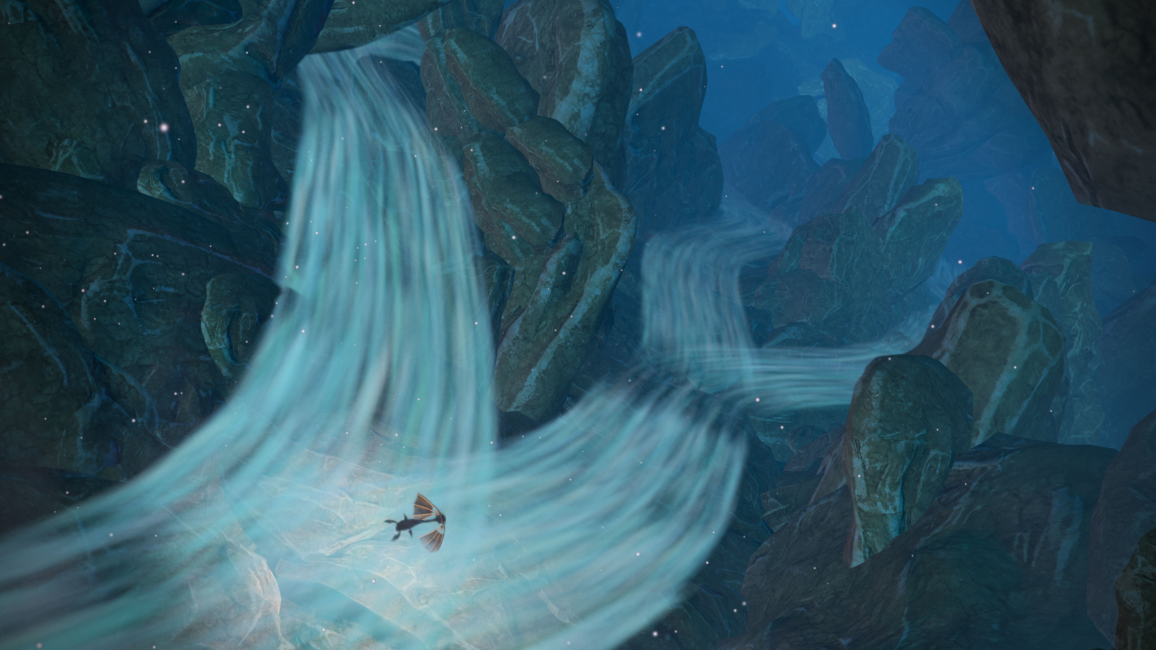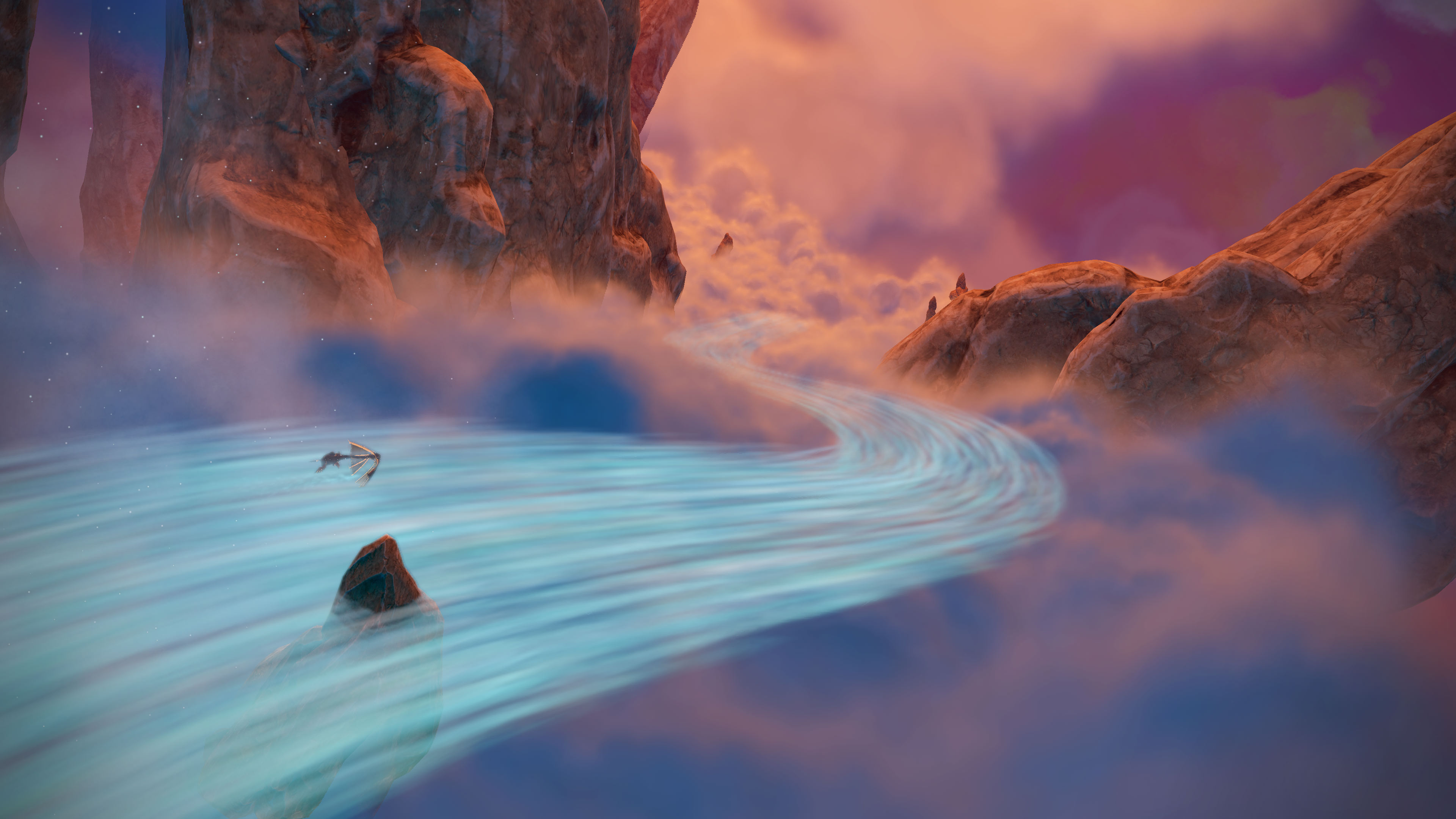 Die Lösung des Problems wurde eineinhalb Stunden vor Beendigung deines Abenteuers angekündigt. Patch 1.05 ermöglicht die Schnellreise zu allen Ortspunkten auf der Karte. Du kannst also ab jetzt zu jeder Zeit das Steuer deinem Roboter in die Hand drücken wenn die entspannende Segelei mal zu lang oder zu entspannend sein sollte. Auch zu unbekannten Orten segelt Six selbstständig und übergibt Aliya erst zur näheren Suche des geheimnisvollen Ortes das Steuer. Gute Entscheidung, um Heaven’s Vault als Spielerlebnis etwas kompakter gestalten zu können. Die Ströme der Flüsse machen durchaus auch Spaß, doch überfordern sie mit ihrer leisen und minimal agilen Intensität deinen von Müdigkeit geplagten Körper. Offenbar geht es auch zu ruhig.