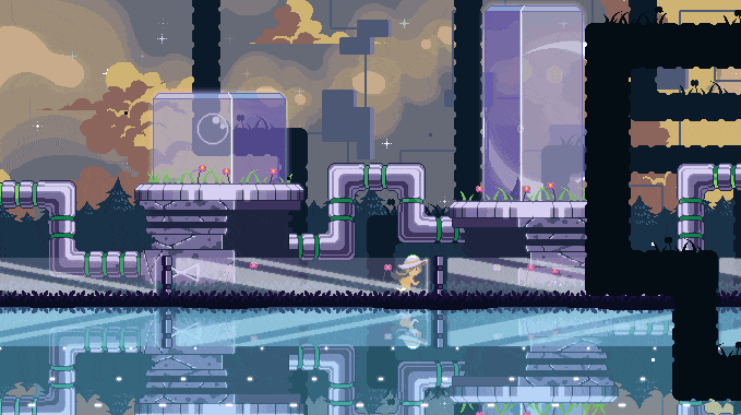 Einmal ausklamüsert erreichst du den nächsten Punkt an dem nicht nur die Geschichte fortgeführt wird, sondern ebenfalls neue Techniken eingeführt werden. Die klassische und liebevoll designte 2D-Sidescrolling Welt, wechselt zur – aus Visual Novels bekannten – Portraitansicht, in der die einzelnen Charaktere mit Textfeldern hervorgehoben werden.