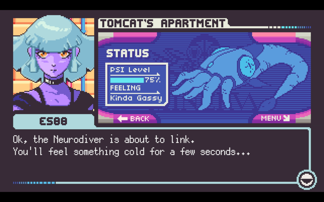 Dieses Mal geht die Technik noch einen Schritt weiter als im Vorgänger: Ihr spielt Minervas Esper ES88 und pfuscht in den Erinnerung anderer Leute herum, repariert oder löscht sie aus. Die sogenannten Espers können mithilfe genetisch hergestellten psionischen Kreaturen, die sie Neurodiver nennen, in das Unterbewusstsein anderer Menschen eindringen, um dort Erinnerungen zu suchen und zu manipulieren. Dass es zu solch einer technologischen Dystopie kommen kann wird schnell beim Spielen von 2064 spürbar. Ein paar bekannte Charaktere wie die hybridische Anwältin Jess, die lesbische Polizistin Lexi, die nun zur Privatdetektivin geworden ist oder NSF’s notorischer Hackerin TOMCAT tauchen so in Neurodiver wieder auf, da Esper ES88 deren Erinnerungen betreten muss.