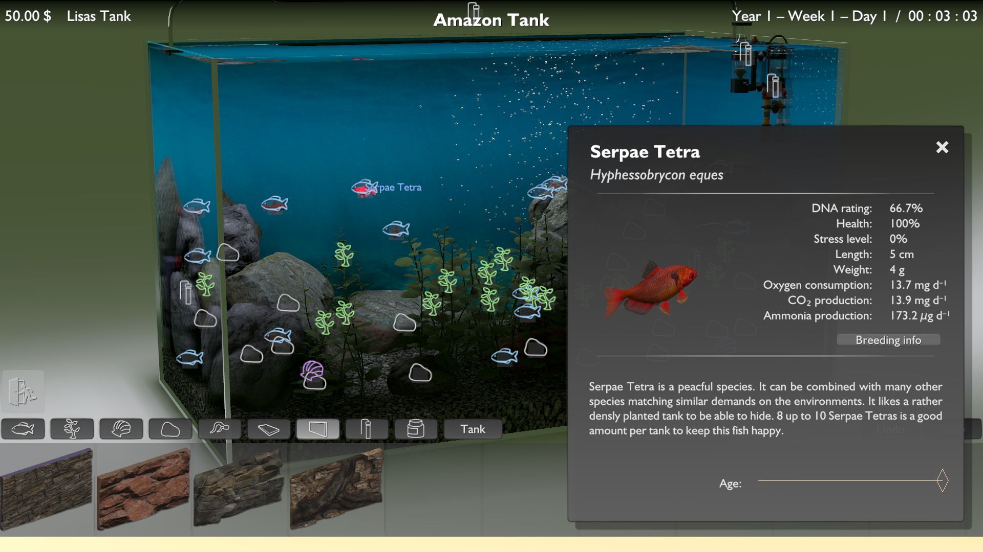 Biotope simuliert nicht nur das Fisch- und Pflanzen-Wachstum, sondern auch die Wasserqualität, die Schwarmintelligenz und den Stresslevel jedes einzelnen Tieres. Du begleitest deine Lieben über einen ganzen Lebenszyklus, vorausgesetzt, sie fühlen sich wohl bei dir, glänzen in schuppiger Pracht und erfreuen sich prächtiger Gesundheit. Denn nur dann gibt es auch den erhofften süßen Nachwuchs.