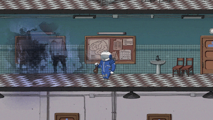 Zu diesem frühen Zeitpunkt scheint The Great Perhaps auf einem guten Weg. Du vermutest mit fortschreitender Spielzeit stückweise Offenbarungen. Immer wieder erwischt du dich dabei, zwischen den Zeiten zu wechseln, um ja nicht eines der vielen versteckten Details der unbekannten Welt zu verpassen. In seinem Gespür für Atmosphäre in Verbindung mit der tristen, comichaften Kunst glänzt Caligaris Erstlingswerk. Immer wieder erinnern dich versteckte Hinweise an die Zeitreiseaushängeschilder des Genres. Ein Zurück in die Zukunft Poster auf der Raumstation oder ein Bad Wolf Graffiti an der Wand sind nette Hommagen an die großartigen Konstrukteur_innen der besten Zeitreisegeschichten.