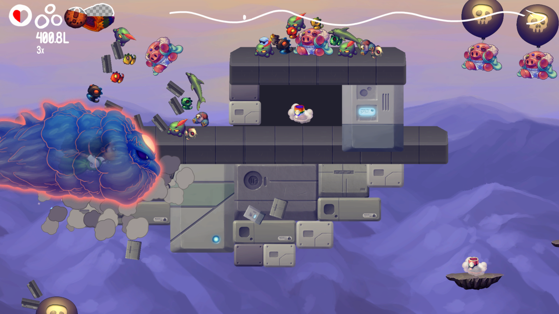 Und so entsteht in Cleaversofts Platformer eine angenehm wohlige, bekannte Atmosphäre in moderner Schnelligkeit und handgemalter Kunst. Eine Atmosphäre, in der du um deine Erde als Lebensraum kämpfst. Ganz schön aktuell, nur eben mit Drachen anstatt greifbaren Thematiken.