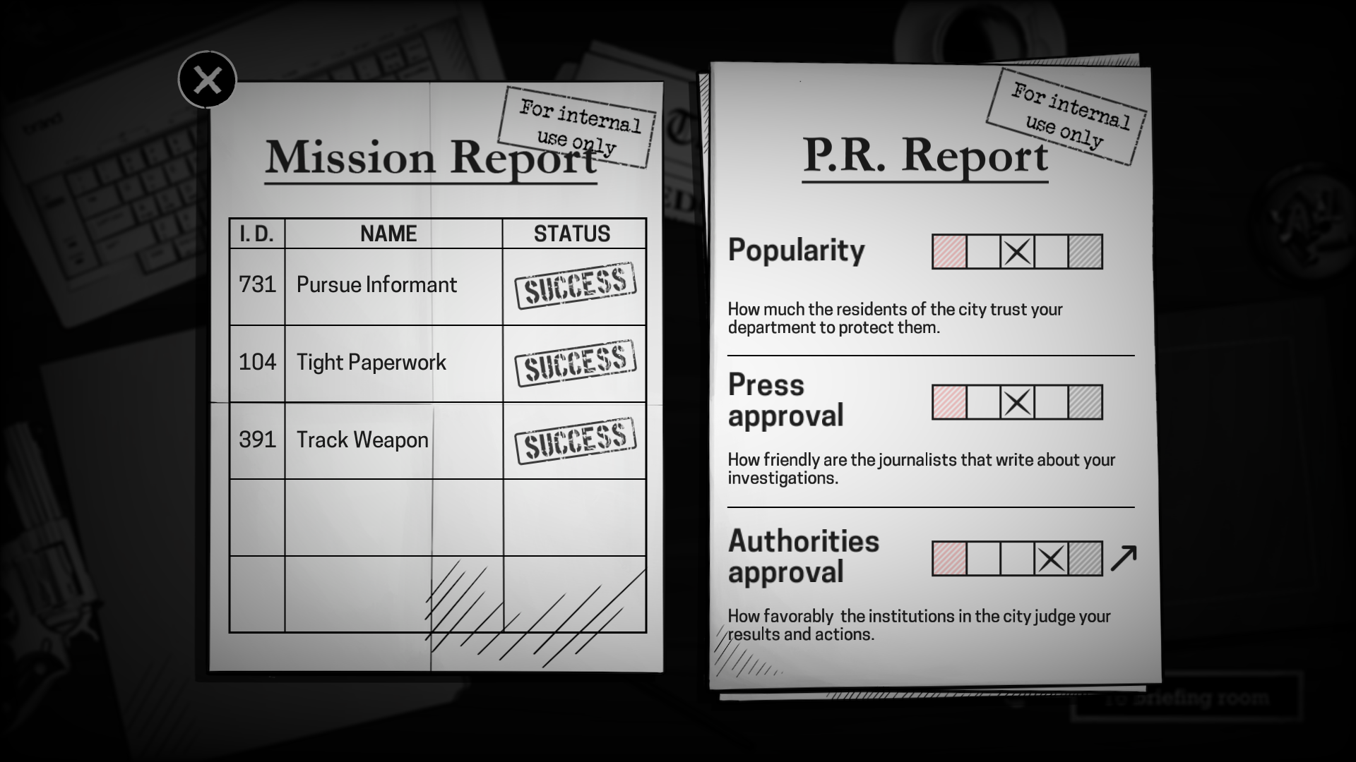 Für den Zweck der Zugänglichkeit haben die Developer Barrieren abgeschraubt und das Verhörspiel ebenfalls auf einer narrativen Ebene bereitgestellt, ohne große Herausforderungen. Doch irgendwie verfolgt dich das Gefühl, dass du für dein perfektes Erlebnis noch eine in der Mitte liegende dritte Möglichkeit gebraucht hättest. Detectiv with Benefits sozusagen. Mit einem Informant_innenteam hinter der Scheibe des Verhörraums und der Möglichkeit kurz mal Rücksprache zu halten, sich Backup zu holen oder Taktiken zu besprechen.
