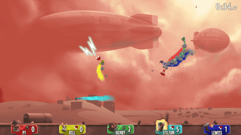 Zwar kannst du auch allein gegen all die anderen Spezies in die Luftschlacht ziehen, doch der eigentliche Fokus von Baron liegt auf dem lokalen Multiplayerspaß. Developer Dogmelon Games verspricht, „du wirst eine längere Couch benötigen“, denn bis zu acht Spieler_innen können sich gleichzeitig in die bunt kolorierten „historischen“ Ereignisse stürzen. In unendlich vielen Modi und Kampagnen könnt ihr euch gegenseitig, in Teams oder gemeinsam vom Himmel schießen.