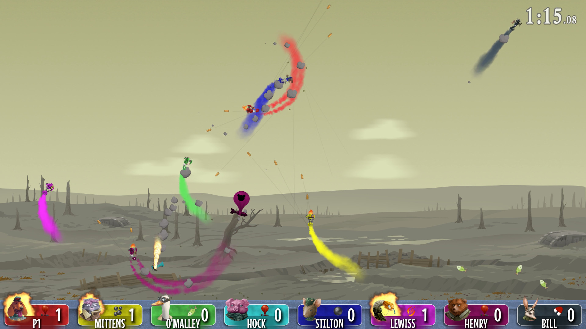 Dogmelon Games bringen dich zurück in die Zeit der tollkühnen Flughelden und der prägnanten Persönlich… äh, Tierlichkeiten. Ganze acht von ihnen warten auf ihren Einsatz, um wahlweise Maus, Katze, Schlange, Bär oder Ganz zu zeigen, wer der oder die König_in der Lüfte ist.