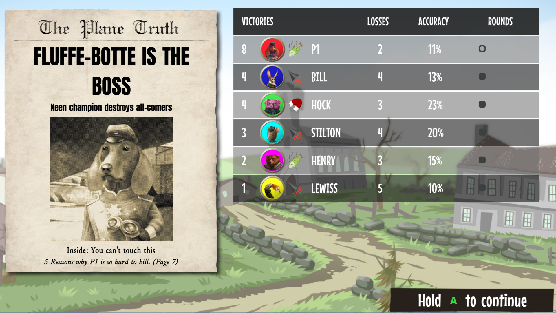 Du kannst dich an diese Version der Weltgeschichte nicht erinnern? Doch, doch, das ist vollkommen richtig recherchiert und vom oben genannten Geschichtsexperten als „total Authentisch“ eingestuft. In Baron: Fur is Gonna Fly treten die bekanntesten Pilot_innen und Luftfahrtpionier_innen der Welt in akkurat rekonstruierten Luftschlachten gegeneinander an. Dackel Baron von Fluffe-Botte in seinem semi-historisch nachempfundenen Flieger mit der bunten Ballon Bombe zum Beispiel. Oder das seinem Traum folgende Schwein Colonel Hock und ihrem Markenzeichen von Wunderwaffe, dem Stinkenden Fisch.