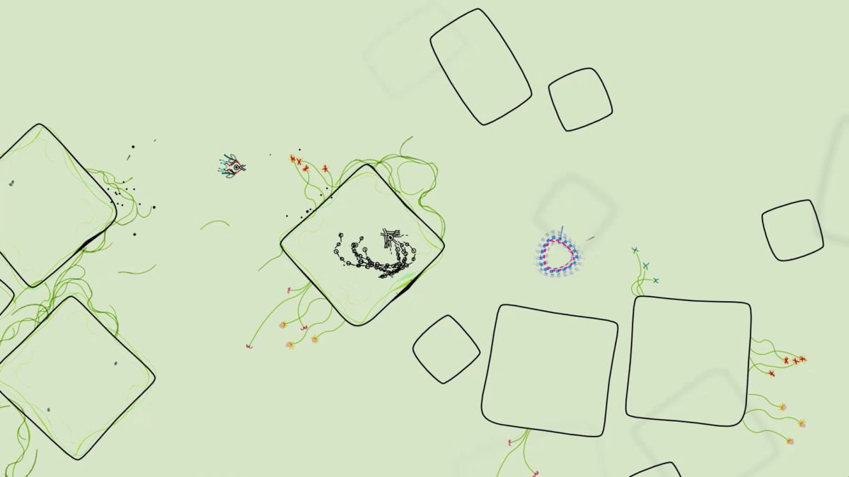 Der Platformer von Nicklas Nygren (alias Nifflas) stützt sich voll auf seine visuelle, musikalische Kraft und schließt Worte komplett aus. Moment Platformer? Ynglet ist ein Platformer völlig ohne Plattformen. Vielmehr gleitest du wie ein Weltraumdelphin durch die handgemalte Welt, lässt dich von weiteren umherfliegenden Blasen in deine gewünschte Richtung bouncen oder schießt energisch gegen Wände, die dich billardmäßig in exakt berechneten Bahnen zurück befördern.