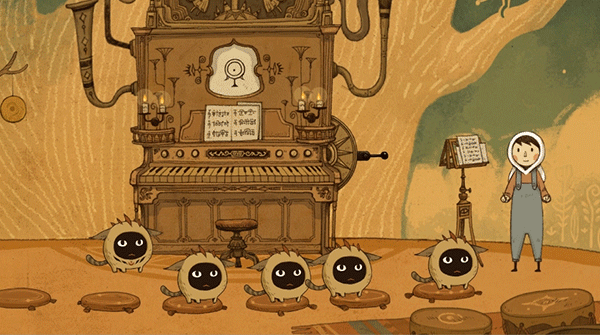 Die imposant animierten Filme werden an bestimmten Punkten des Turms immer nach Beendigung eines bestimmten Levels zwischen einigen wenigen Abschnitten eingespielt. So wollen dir die Entwickler_innen aus London, Toronto und Shanghai immer mehr von der Geschichte und den Erinnerungen des Jungens preisgeben. Insgesamt sollen über 20 Minuten animierter handgemalter Kunst zustande kommen.