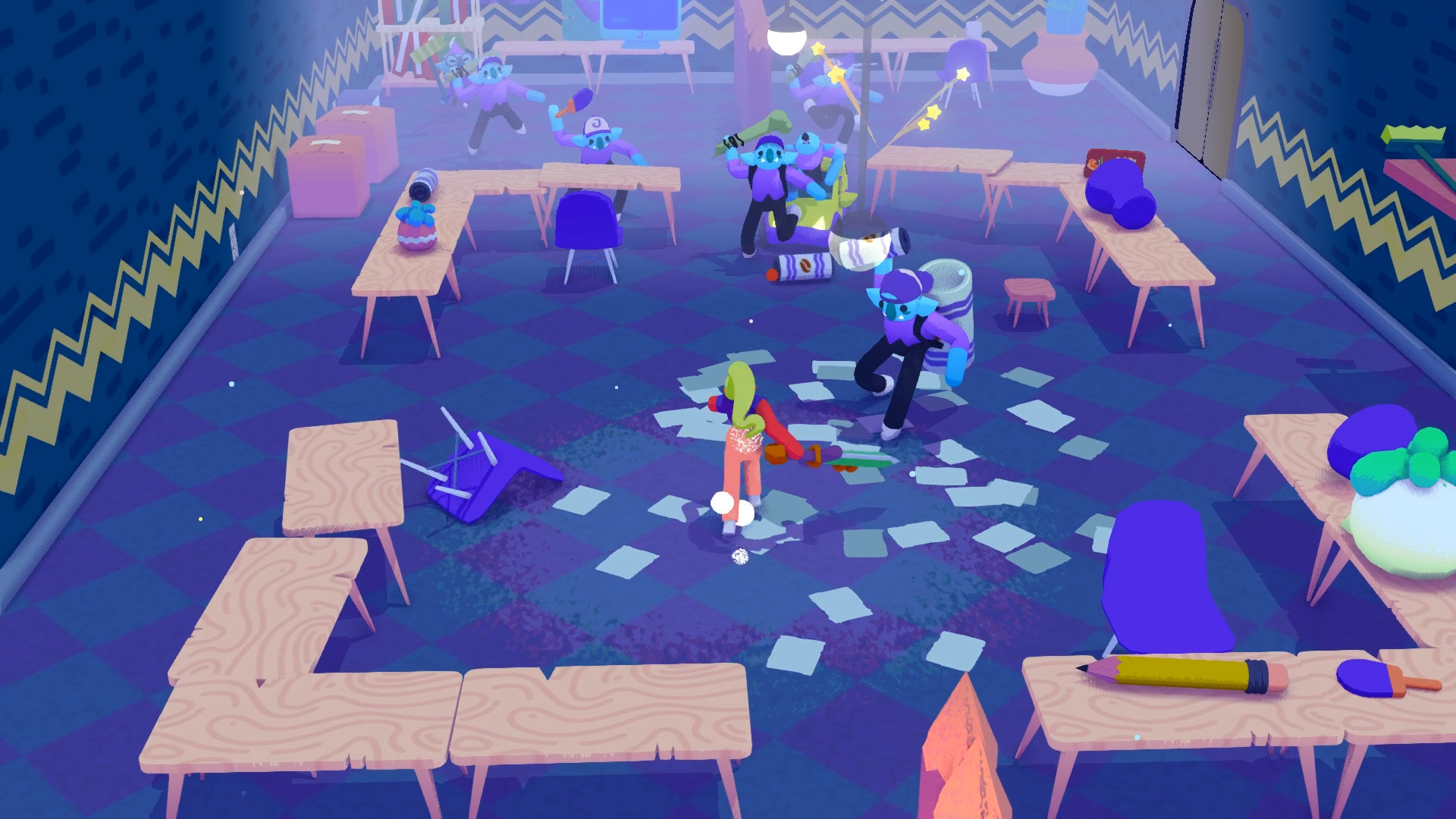 Je nach Businessmodell der erfolglosen Neugründungen, erwarten Jackie dort unterschiedliche Gegner und Bosse – die Firmenbosse der Startups. Und je nachdem, worum es geht, werden die absurdesten Gegenstände zu Waffen umfunktioniert: Laptops, riesige Bleistifte oder Topfpflanzen. Aber es geht ja um die Erfahrung, die so ein Praktikum bieten kann, richtig?