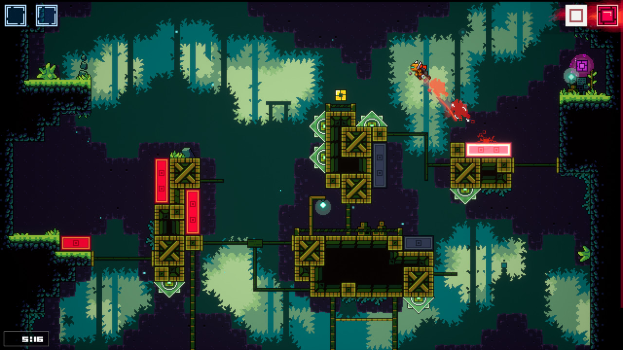 Die Pixelgrafik ist bunt und übersichtlich, schön gestaltet und mit allerlei Signs And Feedback ausgestattet, damit Magbot weiß, wo er lang und worauf er aufpassen muss. Es scheint flott herzugehen und sich flüssig zu spielen. Hier müssen wir auf eine spielbare Version warten, um das genau einschätzen zu können. Die Magnet-Funktion kann extrem intuitiv und natürlich daherkommen oder aber auch hakelig und ungenau werden. Ich hoffe auf ersteres.
