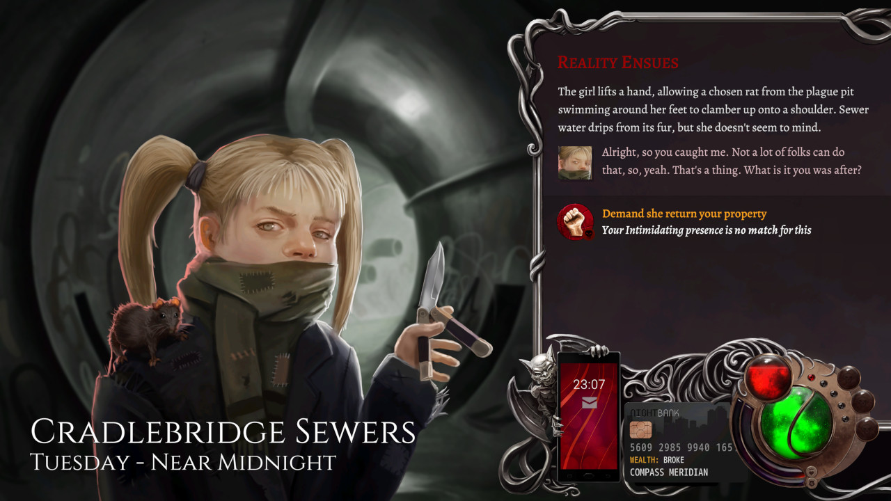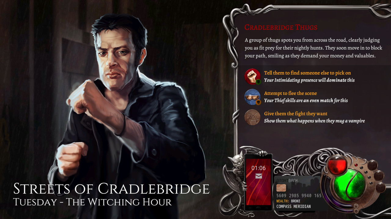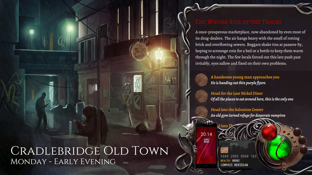 Wadjet Eye Games dürften manchen von euch vielleicht durch ihr Videospiel “Unavowed” bekannt sein, ein großartiges Adventure, dass euch mit der Lösung diverser übernatürlicher Phänomene und Mysterien beauftragt hat. Bereits dort wurde offensichtlich, dass dieses Studio in der Lage ist, großartige, narrative Abenteuer zu entwickeln. Nighthawks: The Vampire RPG scheint laut des Trailers in eine ähnliche Richtung zu gehen. Entwickelt wurde es dabei mit der ink Storyengine. Auf ihr basieren ebenfalls beliebte Titel wie die hauseigenen Heaven’s Vault oder Sorcery. Der kleine Programmiertool-Bruder inkle dürfte euch vielleicht als einfaches Werkzeug zum verfassen interaktiver Geschichten bekannt sein. Die perfekte Grundlage also für ein Spiel mit starkem Fokus auf der Narrative.