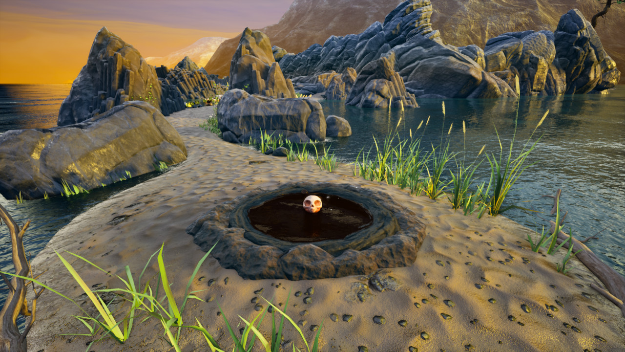 Die Insel stellt uns dabei nicht nur Gegner und versperrte Durchgänge in den Weg, sondern fordert uns auch mit herausfordernder Topografie. Am schnellsten ist Skully von A nach B immer noch in seiner kugelrunden Form. Dann spielt sich der 3D-Plattformer ganz anders, da wir auf die Physik der Kugel achten müssen. Wenn die Kugel nicht genug Anlauf nimmt, schafft sie die Kurve nicht. Übertreibt sie es hingegen, trägt sie das Momentum am Scheitelpunkt hinaus und sie landet im Wasser. Allein bei der Vorstellung werden Erinnerungen an großartige Rollpartien in Super Monkey Ball oder Rock of Ages wach!