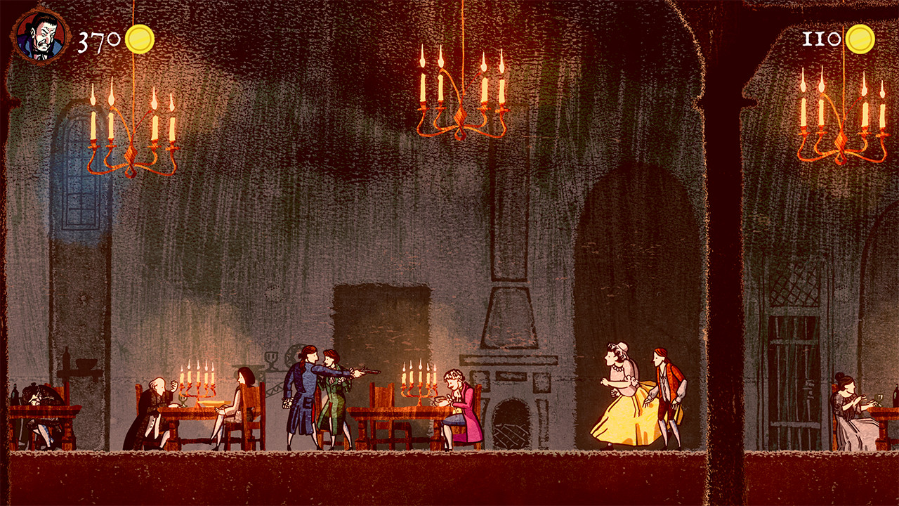 Card Shark ist in einem interessanten Zeichenstil gehalten, der rau wirkt, aber doch viele Details durchblicken lässt. Der Kunstschaffende dahinter ist Nicolai Troshinsky. Dessen Zeichnungen werden begleitet von der Musik aus Andrea Boccadoros Feder. Zusammen ergibt das ein bourbonisches Frankreich, das unerwartet gut zum Thema der Kartenspielertricks passt. Ich werde jedenfalls gespannt auf den Release warten und darauf achten, dass Devolver und Nerial bis dahin kein krummes Ding drehen. Card Shark mischt die Karten neu, wenn es auf Steam und Switch 2021 erscheint.